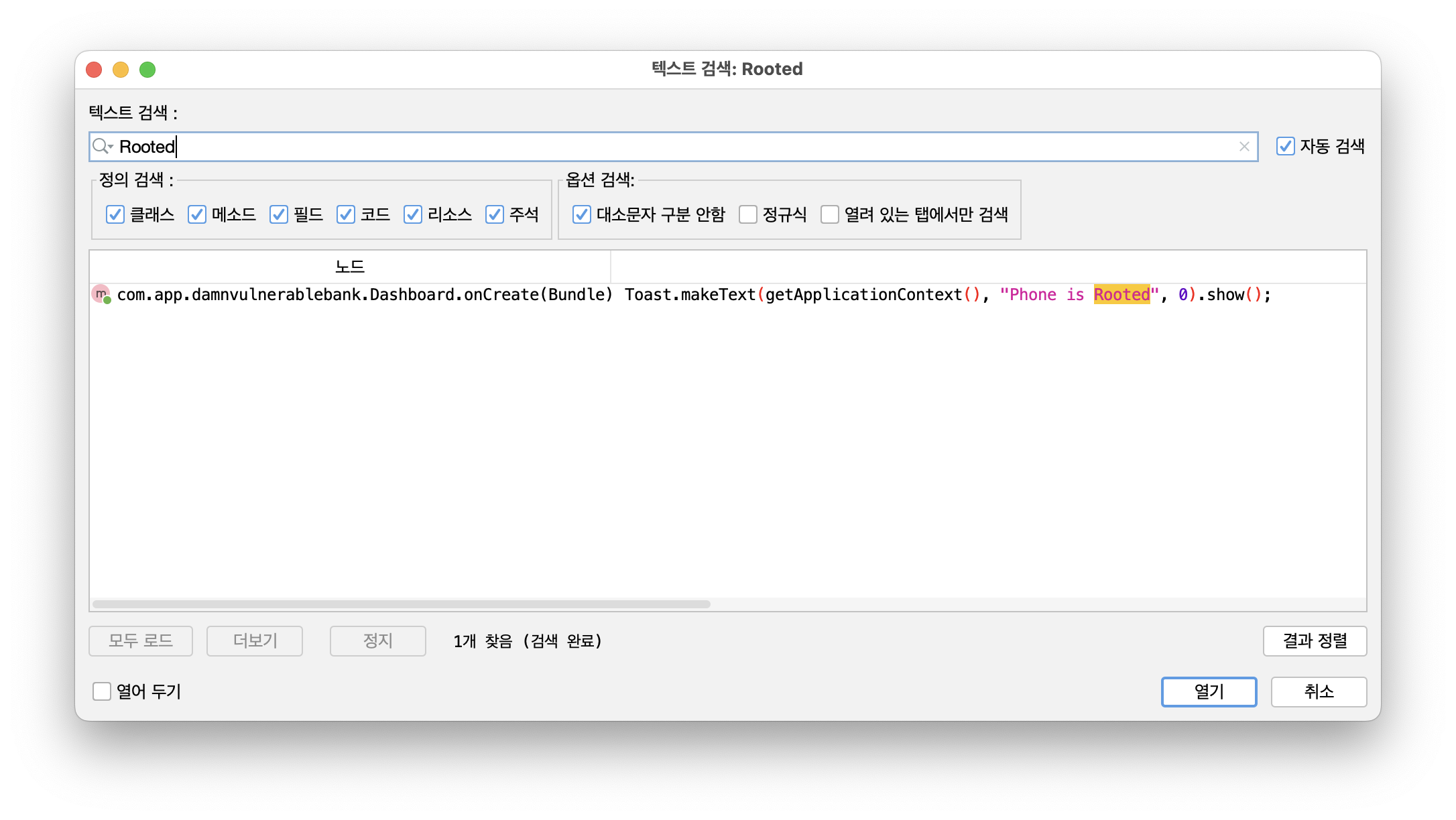 jadx-gui 도구를 이용해서 아래와 같이 dvba.apk 파일을 열어주어도 소스 코드를 확인할 수 있다.