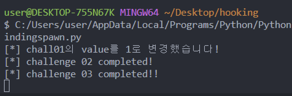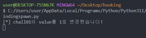 console.log("[*] chall01의 value를 1로 변경했습니다!")