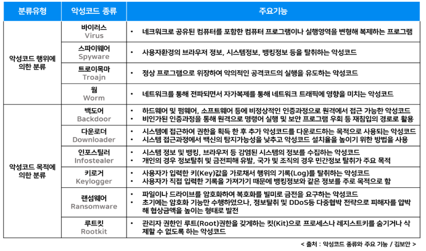 - 악의적인 목적으로 프로그램 및 스크립트 제작 등 모든 코드의 총칭